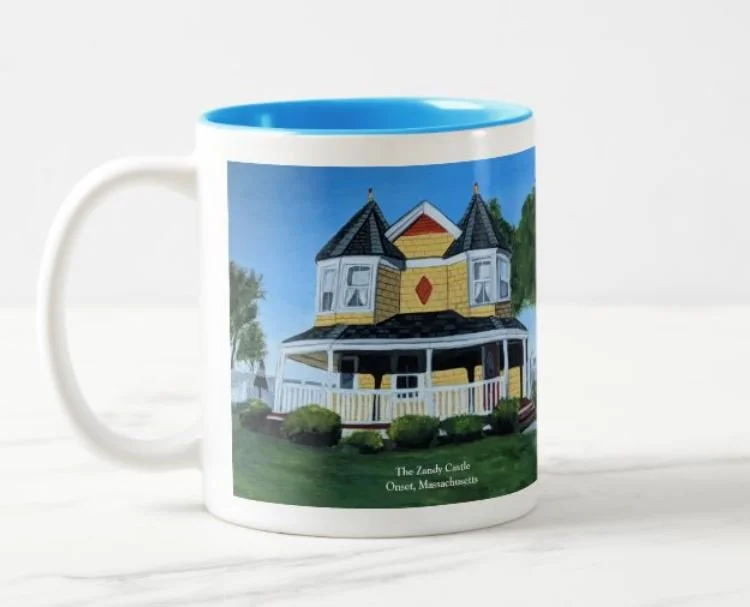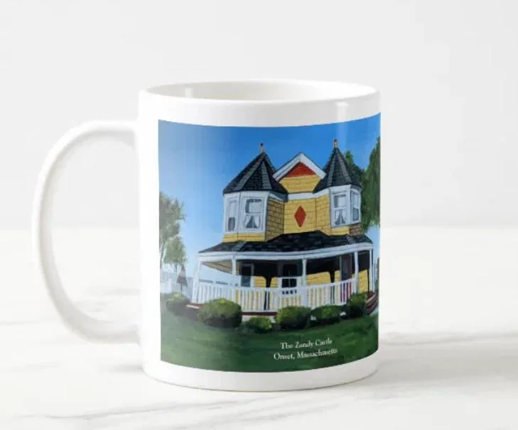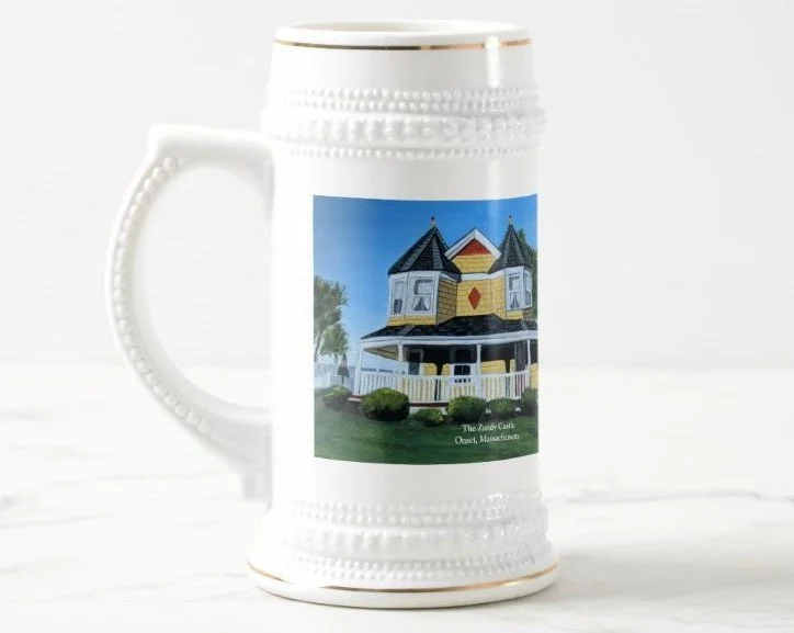 Our very first guests of the summer season were big admirers of Victorian architecture. The couple were fascinated by the renovation project (there is a book in the house that documents it more extensively than on this site). They enjoyed their stay so much that they wanted a momento of their time here and asked if we sold Zandy Castle mugs or bathrobes.